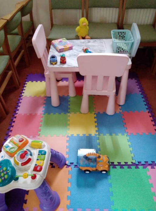 The inside of the building is cozy and bright and welcoming. Busy Bees which supports Mums and Dads and their babies and young children is held one morning a week.